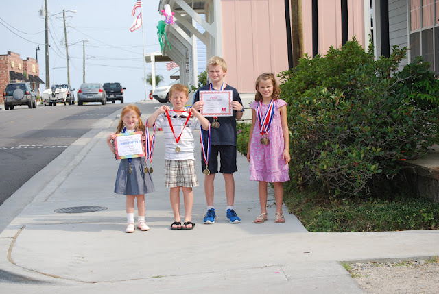 Hayden, Kara, Kelton, and Halle did really great this year. I have to brag on them a bit because when they started the school year they were all shocked by how hard the school was. Kara received a 60 percent on her first test and Hayden was getting C's in 3 out of his 7 classes. They decided to really commit to getting good grades, and they all ended up doing great. At the end of the year they give out awards for different accomplishments. Let's start with Halle who received the good behavior award which means you were consistently doing what you are supposed to and always following directions. This was the only extra award for Kindergarten. Halle can also write in complete sentences, and is a great speller too. She is reading 1st grade level books like a wiz kid with out having to sound any words out. Kelton received the Good Behavior award, Math, Spelling, Reading (these awards are for the child who had the highest percentage points in that course all year), and Honor Roll (having A's and B's all year). Kelton had straight A's all year. He never missed one spelling word. He actually had a 104 percent average because he got all the bonus words right too. Each week the kids were tested in every subject with multiple choice and essay type tests (even Halle was tested this way). Kara received the Good Behavior award, Reading, Science, Language Arts, and Honor Roll. Kara loves writing and is so good at English. Neither me or Brent understand the English, it is very difficult, I never knew there was so much to English. Hayden received the Star Student award (voted by the teachers), was on the honor roll, and received the Star Performer award. His band teacher said he has never had a better beginning Tuba player. He said if Hayden sticks with him he will be able to get him a full ride scholarship to any college in the United States. Hayden also never missed a spelling word all year and never studied for a spelling test either. All of the kids have been taking piano lessons and doing great. They have a sort of a love hate relationship with piano. Kara had her choir performance and did amazing. Everyone was so amazed that such a big voice came out of that little body. Her choir teacher told me I should get her into music lessons because she thinks Kara has some real talent. She said she did not know how good Kara was until she tried out for this part and she was amazed by her. Anyways lots of bragging by me, but I am really proud of the kids for adjusting so well and then really performing, even when it has really been such a struggle for us.